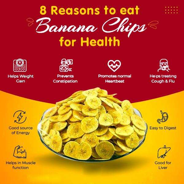 Banana chips are made by slicing and dehydrating raw bananas, offering a crunchy snack with a sweet or savory flavor. They are commonly used as a standalone snack, in trail mixes, or as toppings for desserts and cereals. Rich in potassium and dietary fiber, they provide quick energy and support digestive health. The chips are convenient, shelf-stable, and popular in both traditional and modern diets.