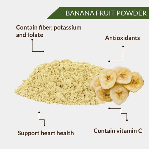Banana powder is made by drying and grinding ripe bananas into a fine, nutrient-rich powder with natural sweetness. It is used in baby food, bakery products, smoothies, health supplements, and instant mixes. Rich in potassium, Vitamin B6, and dietary fiber, it supports heart health, digestion, and energy metabolism. The powder is shelf-stable and easy to incorporate into both food and beverage formulations.