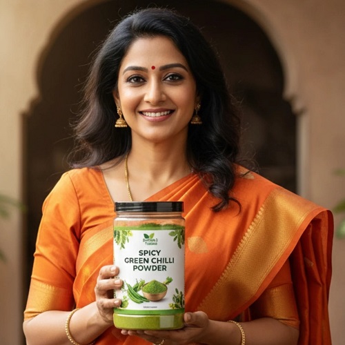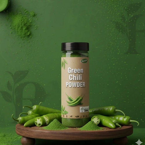 Green chilli powder is made by drying and grinding fresh green chillies, delivering a sharp, spicy flavor and vibrant green color. It is used in spice blends, curries, chutneys, pickles, and snacks to add heat and enhance flavor. Rich in capsaicin, Vitamin C, and antioxidants, it supports metabolism, immunity, and digestion. Green chilli powder is a staple in Indian and Asian cuisines.