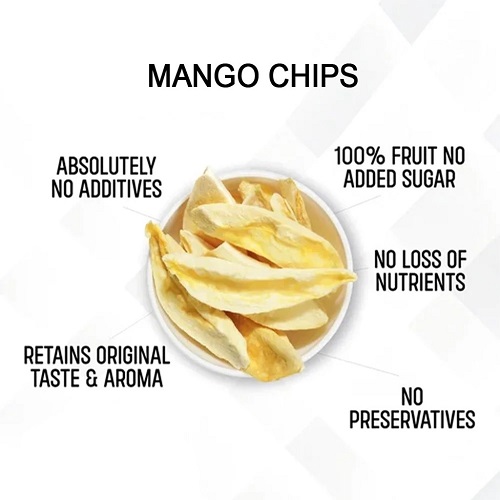 Mango chips are made by slicing and dehydrating or vacuum-frying ripe mangoes, preserving their natural sweetness and tropical flavor. They are enjoyed as a healthy snack or added to cereals, trail mixes, and desserts. Rich in Vitamin A, C, and antioxidants, they support eye health, immunity, and digestion. Mango chips offer a tasty, shelf-stable alternative to fresh fruit.