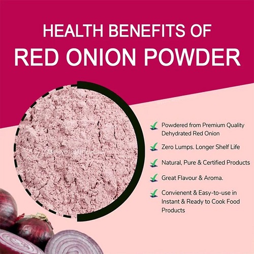 Red onion powder is made by drying and finely grinding red onions, retaining their strong flavor and aroma. It is widely used in spice blends, soups, sauces, marinades, and ready-to-eat meals as a convenient alternative to fresh onions. Rich in antioxidants, quercetin, Vitamin C, and sulfur compounds, it supports heart health, immunity, and digestion. Red onion powder enhances flavor while offering a long shelf life and ease of use.